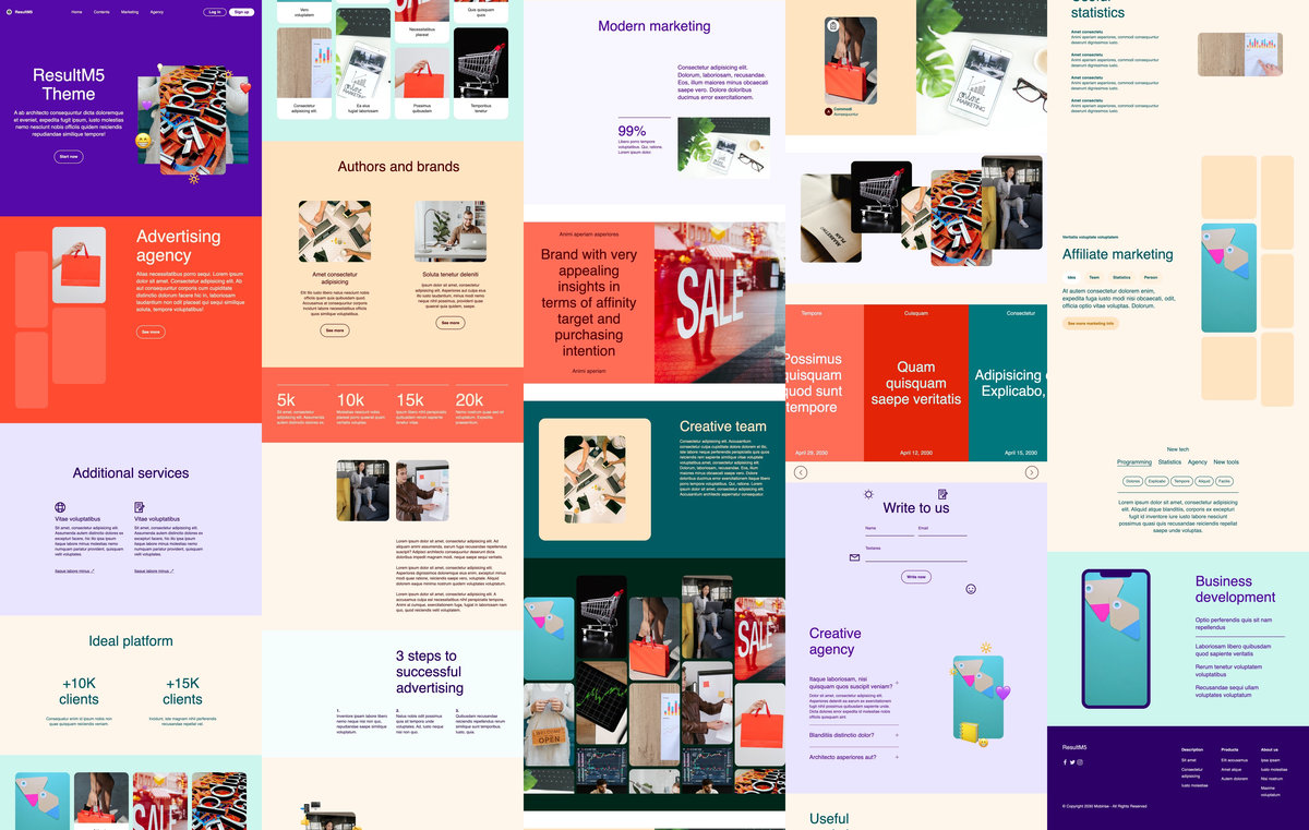 ResultM5 is a theme for affiliate marketing, online marketing, SEO marketing, social media marketing, portfolio, photography websites, designing agencies, businesses, corporate, consultancies, marketing agencies, blogs, advertising agencies, advertising agency.