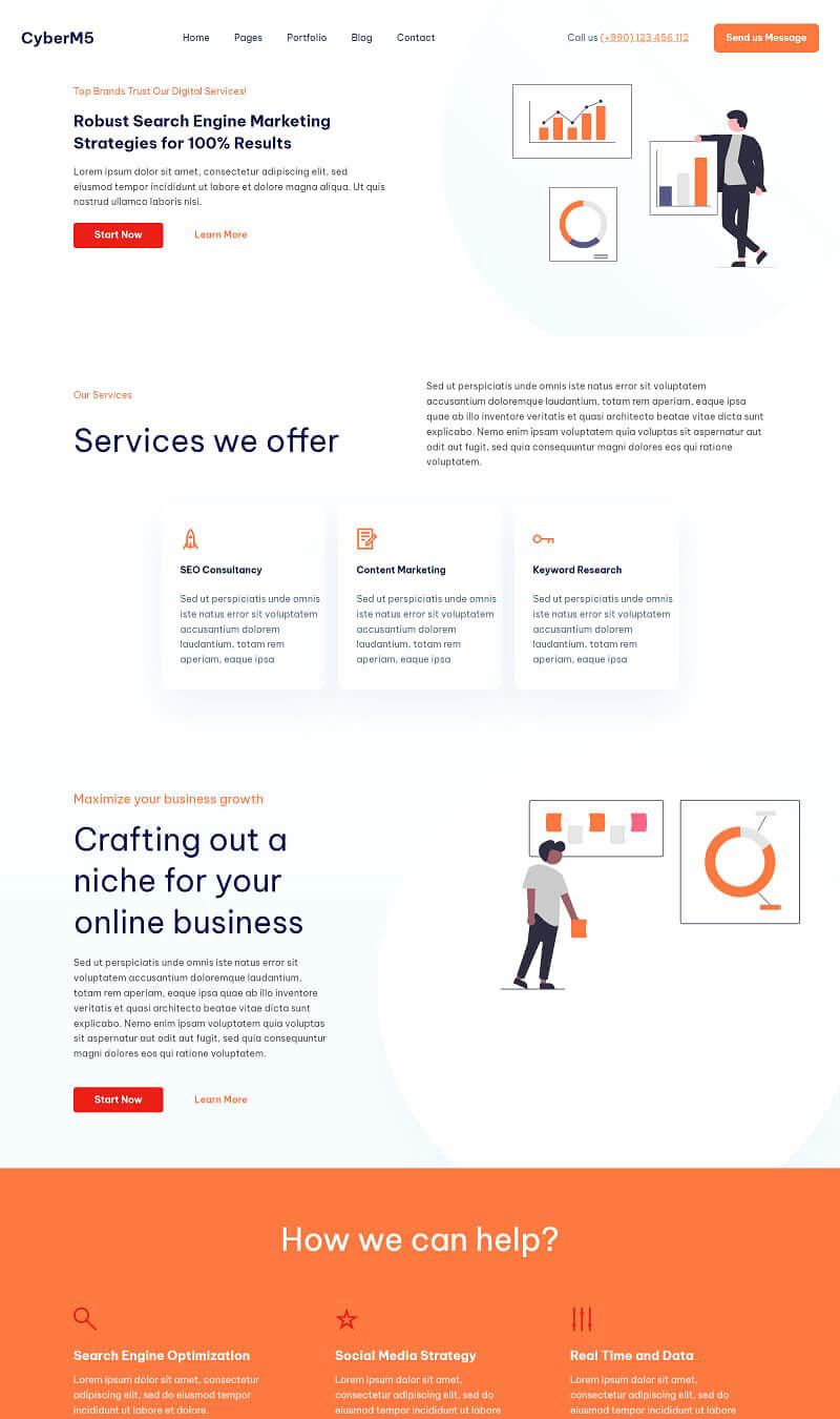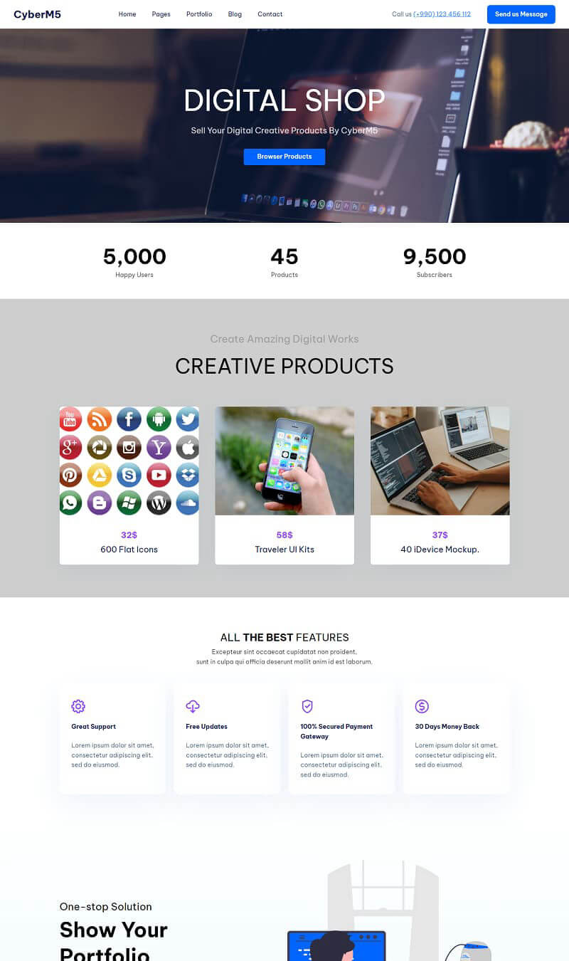 CyberM5 comes with a nice set of Bootstrap 5 blocks for techs, agencies, electronic, plugins, software, cyber security, code snippets, softwares, PR agencies, Anti viruses, designong apps, creative agencies, tutorials. It will allow you to highlight and promote your site with beautiful animations, matched with a combination of bright colors, rounded corners of elements and unusual image presentation.