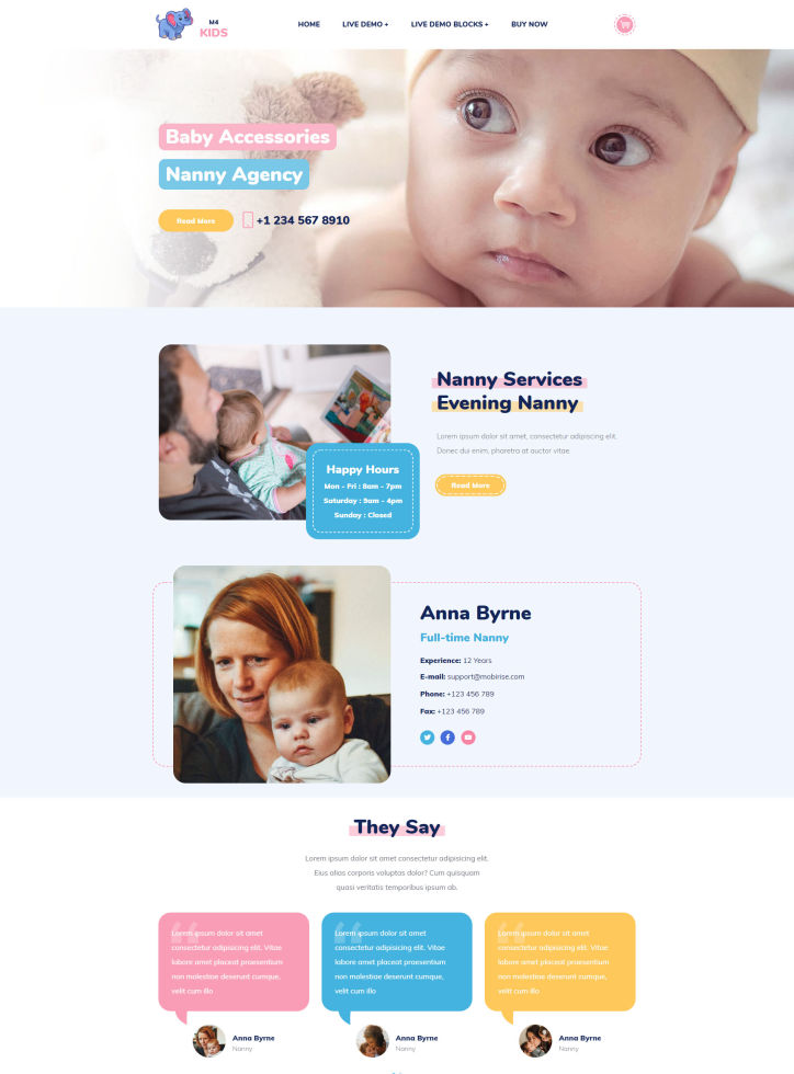A cute website template perfect for preschools and babysitting. It also suits online stores selling children clothes and toys. Create a kids related site with ease!
